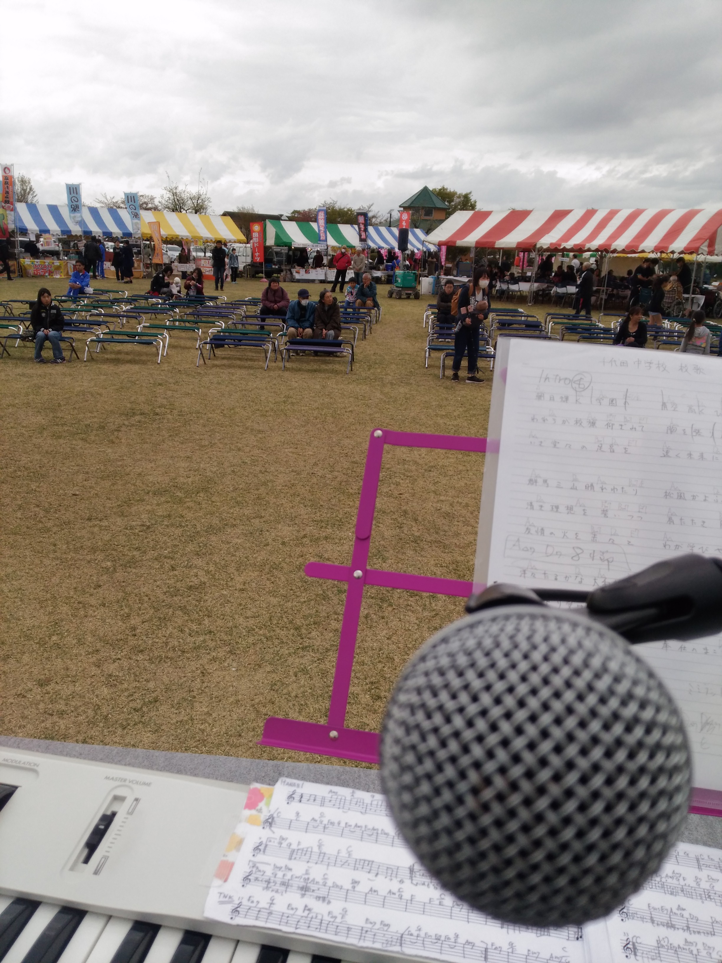 千代田町のなかさと公園で開催中された『桜まつり』に3ピースバンドCO2で出演。